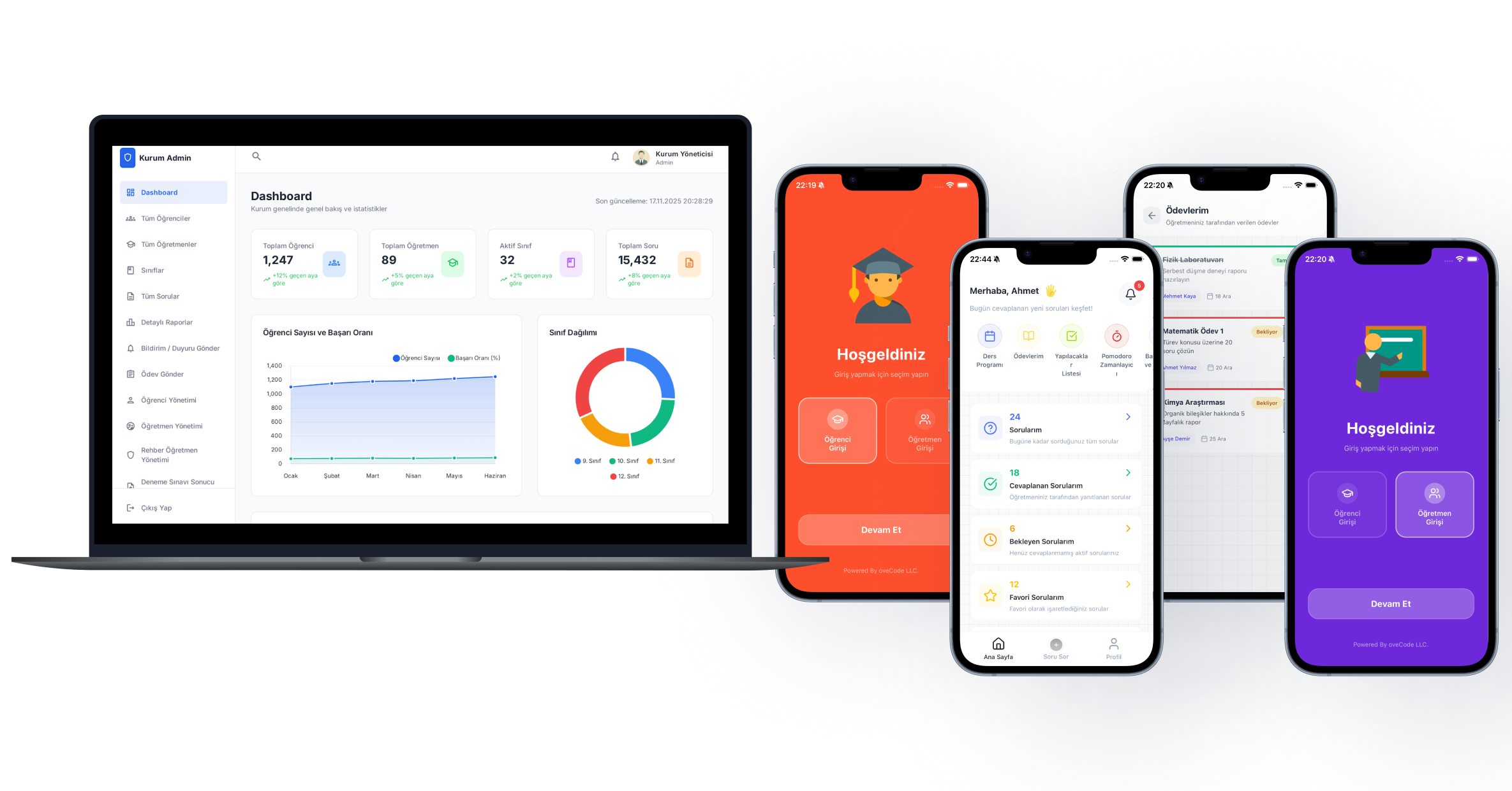 Kurumlar için öğrenci, öğretmen ve öğrenme verilerini tek noktada birleştiren, veriye dayalı analiz platformu.